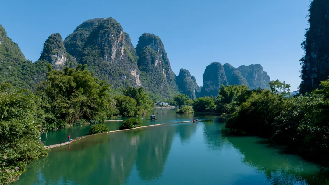在这段被誉为“阳朔山水的精华”的河道风景上,你能观望到富里桥、遇龙桥横跨两岸的美丽风光。