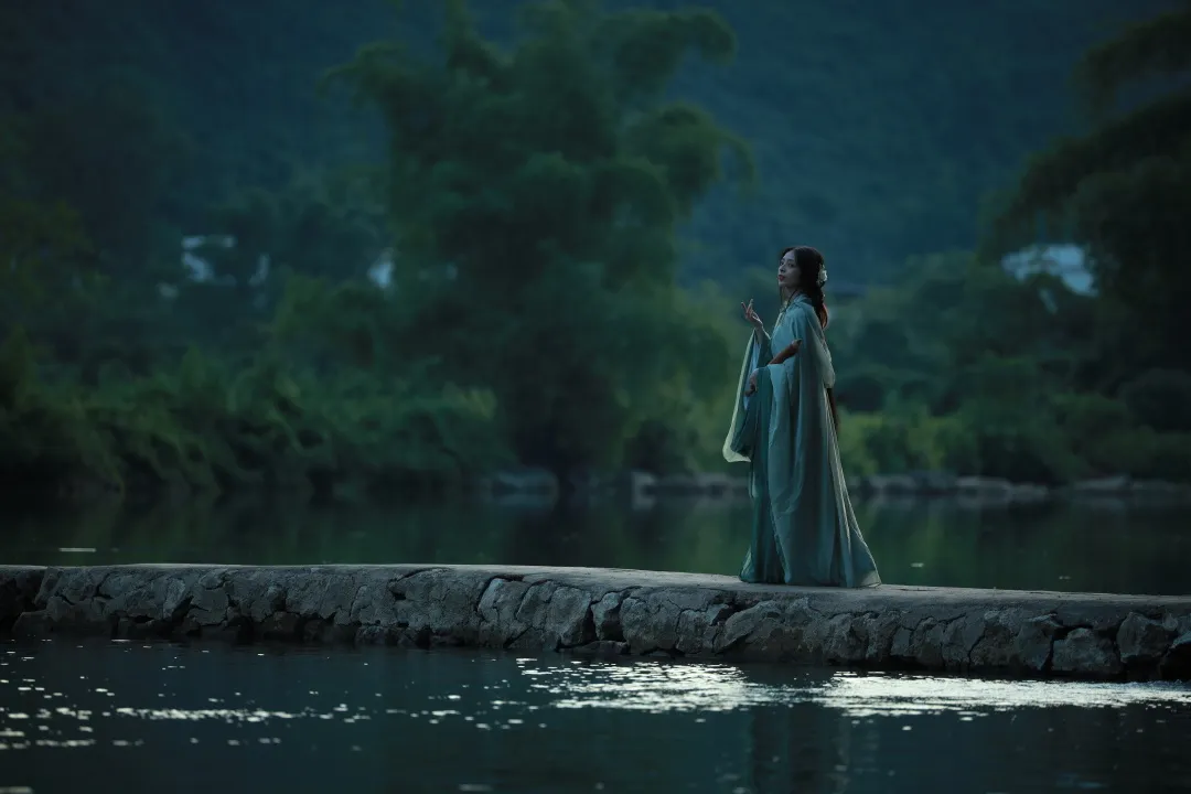 若是在冬季,遇龙河在寒风中显得更加清亮。一袭素衣闯进这静谧深邃的景色中,仿佛在与山水进行一场跨越时空的对话——我见青山多妩媚,料青山见我应如是。