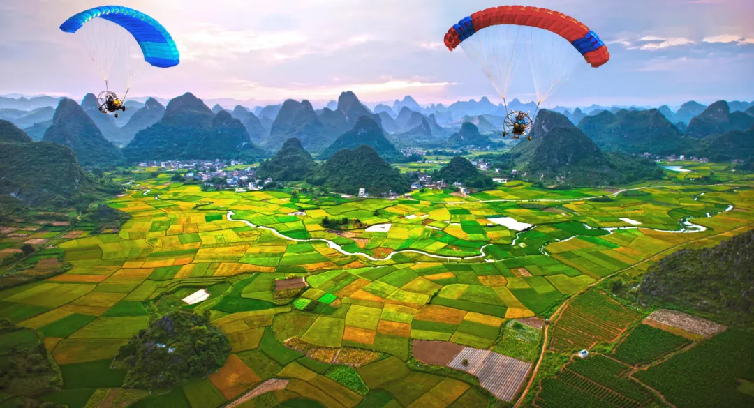 ▲遇龙河景区低空旅游。阳朔县交通运输局/供图