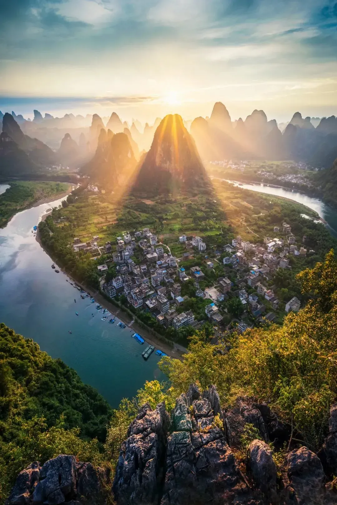 桂林阳朔,一个藏着无数人的山水梦的秘境之地,一座被大自然眷顾的小城,拥有着漓江和遇龙河,河流蜿蜒流淌于田野之间、村庄之中,勾勒出一幅山水画卷。