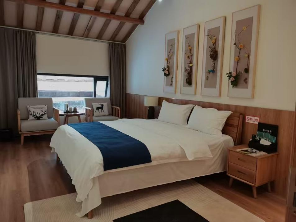 民宿以禅意为魂,一砖一瓦皆有故事。白墙黑瓦,古韵盎然;室内木制家具与素雅色调相融,布置简洁而富有格调,营造出温馨放松的居住氛围。