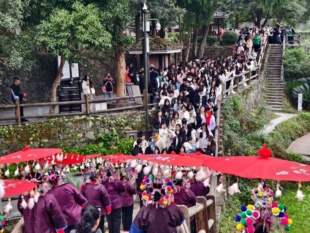11月21日,柳州市中山中学的600名师生率先抵达程阳八寨景区,拉开了此次研学热潮的序幕。