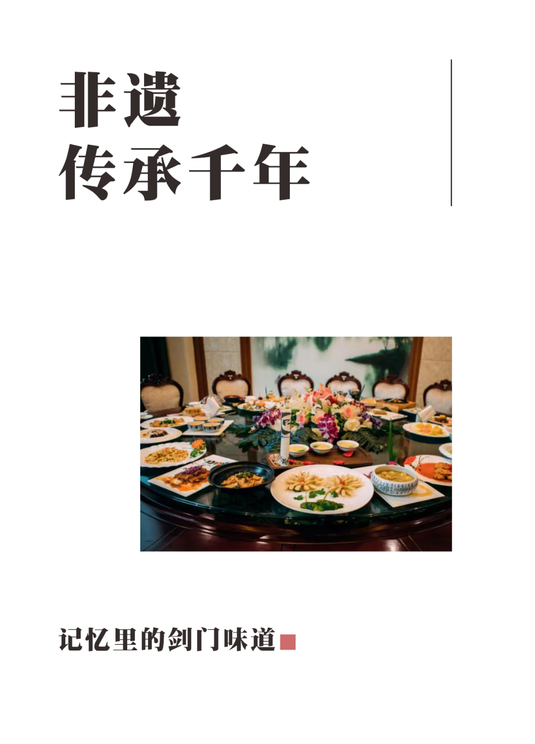 优质的原料,再通过炒、炸、烧、炖、蒸、煎、拌等多种工艺,当地人创造出280余种菜品,将豆腐的风采全方位展示,并依托历史故事为菜品取名,形成一席剑门豆腐宴。