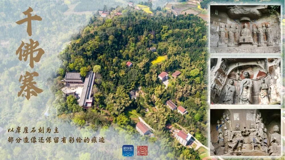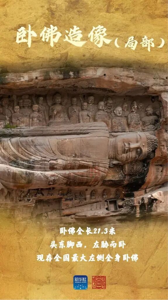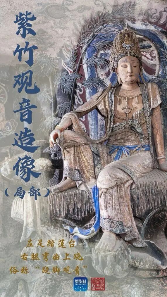 紫竹观音造像位于第五批全国重点文物保护单位毗卢洞内。该洞石刻造像主要开凿于宋代,后经历代修缮补刻。这尊观音像高3米,悬坐于3米长的弧形荷叶上,头戴镂空花冠,彩带飘逸,上身微左侧,左手抚撑叶面,右手呈“兰花手”放于膝上,赤脚。与常见的直立、端坐的观音造像不同,这尊雕像姿态悠然、神情自若,其潇洒之态仿佛在与千年后的游客对话。卧佛龛的造像依山取势、大胆创新,由三组构成:上面一组为释迦牟尼涅槃前的说法图,中间一组为释迦牟尼左侧卧佛造像,下面一组为善财童子五十三参造像。茗山寺现存摩崖造像63尊、碑刻19通、题记4处,主要开凿于宋代。造像依绝壁雕刻,像前仅有一条小道,依山取势,各具特色,且大多慈眉善目、神态安详,宝冠装饰各异,无一雷同。这里还是游戏《黑神话:悟空》的取景地。文殊师利像高6.4米,左手托书向外伸展1.5米,书与手的重量合计达数百斤,仅由高2.2米的垂地袈裟支撑,历经千年不倒。这一设计是古代匠师巧妙运用力学的杰作,展现了中国古代雕塑艺术与科学技术的完美结合。