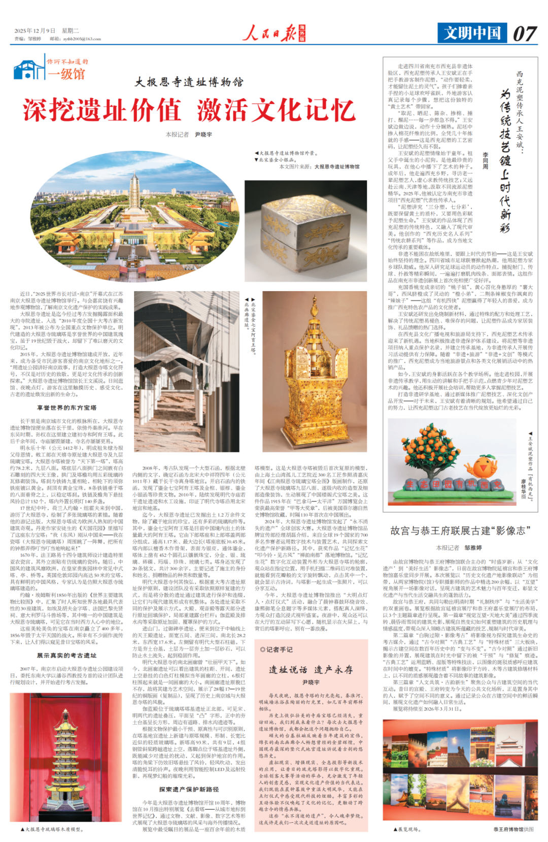2025年,大报恩寺遗址博物馆迎来开馆十周年,人民日报海外版重磅刊发专题报道《深挖遗址价值 激活文化记忆》,以大篇幅回望这十年来大报恩寺遗址的探索与跃迁。