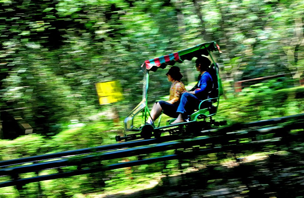 与冠岩溶洞配套推出的电动观光滑车,全长3.2公里,是世界基尼斯纪录中最长的旅游观光滑道。该滑道由景区自主开发,是国内首条电动观光滑道。电动观光滑道建成后犹如一条绿色长龙,与周边环境甚为融合,蔚为壮观。乘坐该滑道,游客既可轻松欣赏冠岩景区的田园风光和漓江美景,又能体验贴地滑行的无穷乐趣;乘坐滑道,游客从停车场直达洞内,轻松游览冠岩景区,极具娱乐性及刺激性。
