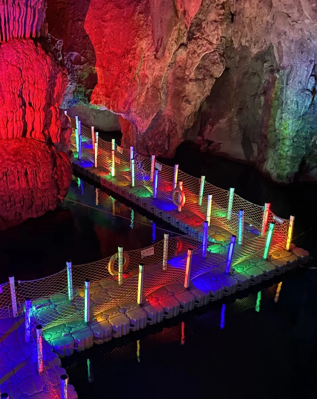 冠岩与别的岩洞相比最大特色有两个:一个是拥有规模巨大的地下河水系,神秘、变幻莫测的地下河峡谷和飞流直下的地下河瀑布。冠岩另外一个独一无二的特点就是“海陆空”立体参与性游览方式。在冠岩洞内,您可以通过地下河梦幻七彩浮桥在地下暗河中探奇,欣赏到奇异瑰丽的景致;您还可以乘坐36米高的亚洲洞内第一观光电梯“上下求索五千年”;还可以乘坐观光滑道幽然进洞;甚至您还可以乘坐洞内小火车“穿越洞内时光隧道”。也正是因为冠岩洞内有如此多达五种的立体游览方式而当之无愧成为世界游览方式最多的岩洞。