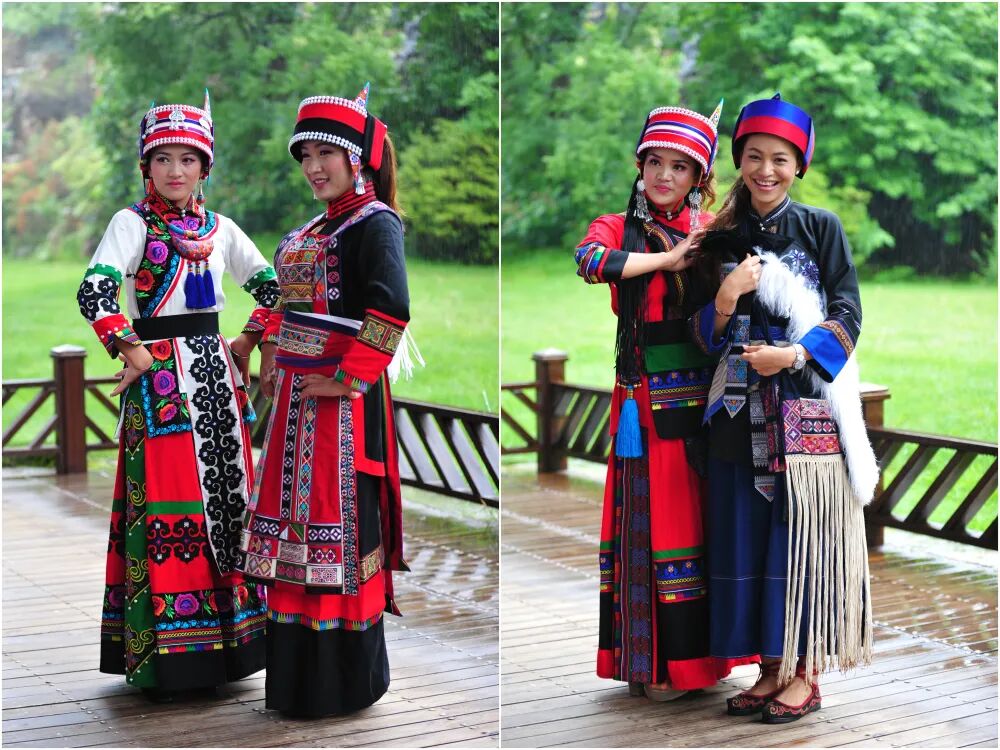 彝族撒尼服饰图案形象生动,工艺精湛独特,一件服饰就是一件精美的艺术品。青年男子身穿长袖对襟衣,外穿麻布短褂。下穿宽裆裤,腰系蓝色或红色布腰带。