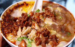 占据乐山人一日三餐的豆腐脑也是要尝尝的,不管你是甜党还是咸党,来四川吃豆腐脑,通通都要变成辣党。调料搅合搅合,超级入味!