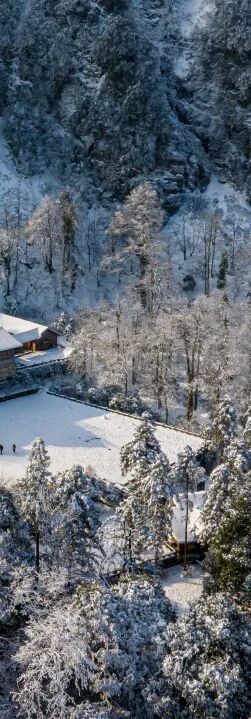 冬天来这儿可以赏雪,还可以泡温泉。人少景美不打挤,说的就是黑竹沟吧~