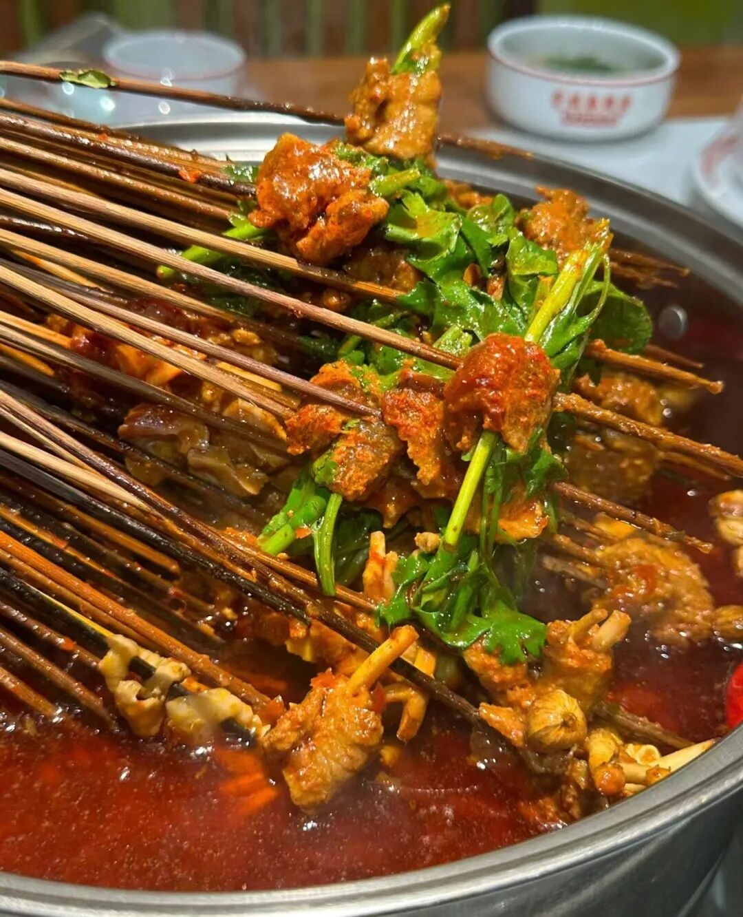 锅底、蘸料、配菜,是牛华麻辣烫出圈的秘诀。牛油或清油锅底,有浓郁而撩人的鲜香味↓