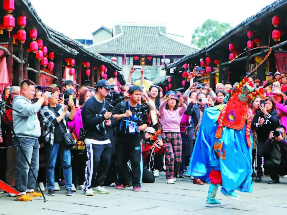 在犍为县罗城古镇观看川剧节目