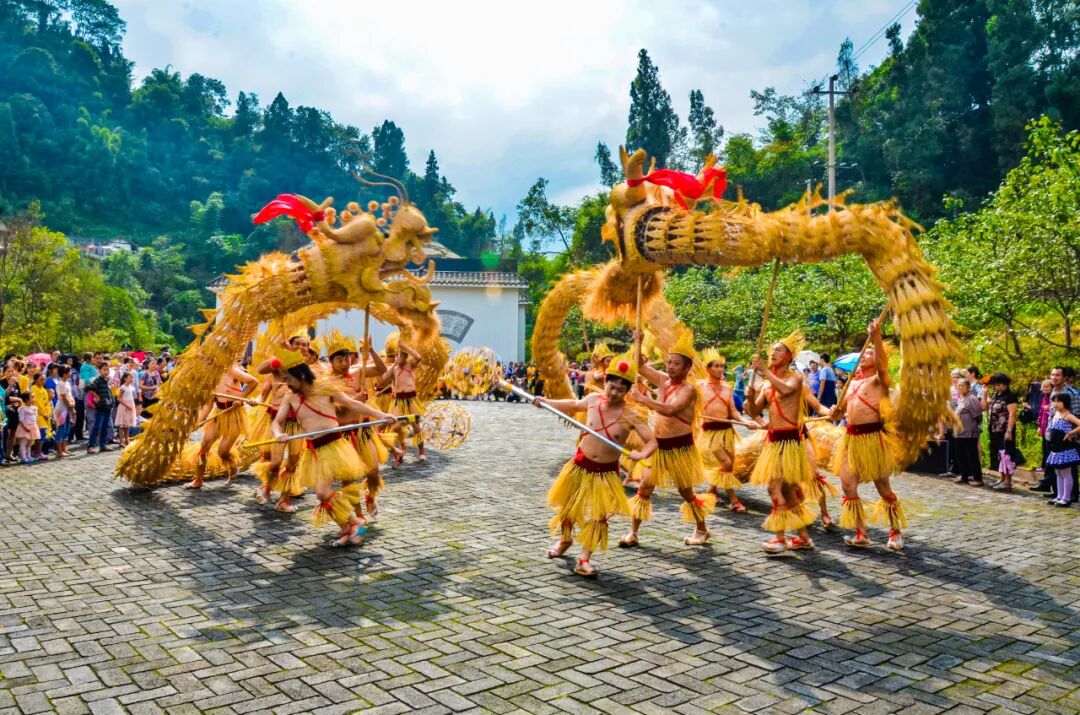 乐山还有一项国家级非遗——沐川草龙。其精妙之处在于“编”和“舞”,不仅扎制工艺非常复杂、制作周期久,草龙的舞动也需要技巧,一般需要选数十上百名训练有素的强健男子配合。