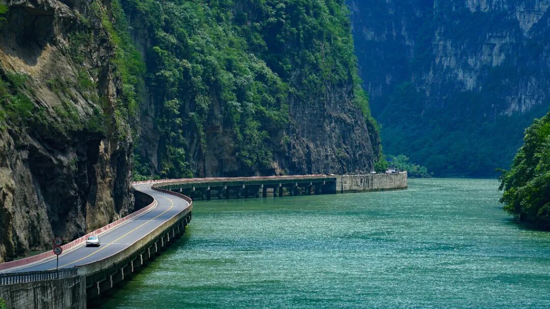 去黑竹沟的路上,会经过大渡河金口河大峡谷,这里有一条🌊超级出片的水上公路。