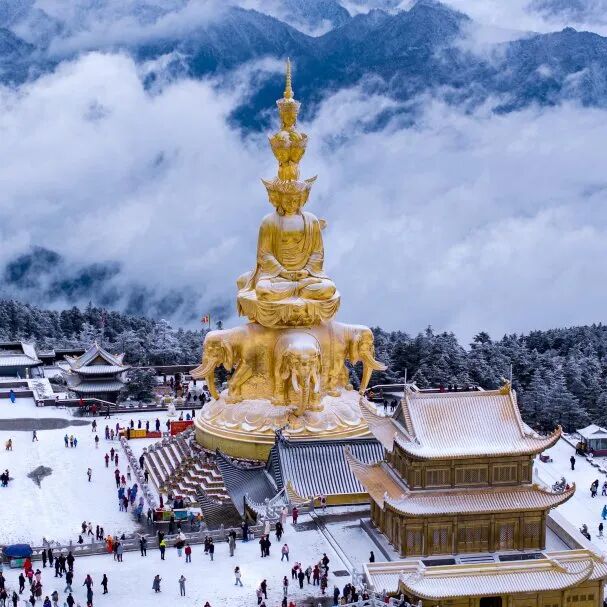 冬天来峨眉山,主打一个性价比。如果遇上好天气,登上金顶还能邂逅佛光、云海、日出,想看的风景一次性all in~