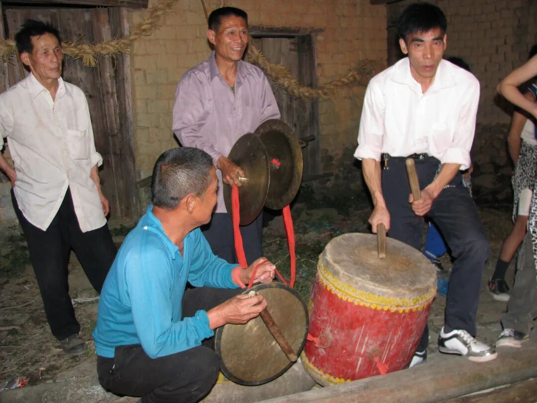 八步区南乡镇旺村举办的壮族舞火猫活动伴奏乐队(摄影:白奎)
