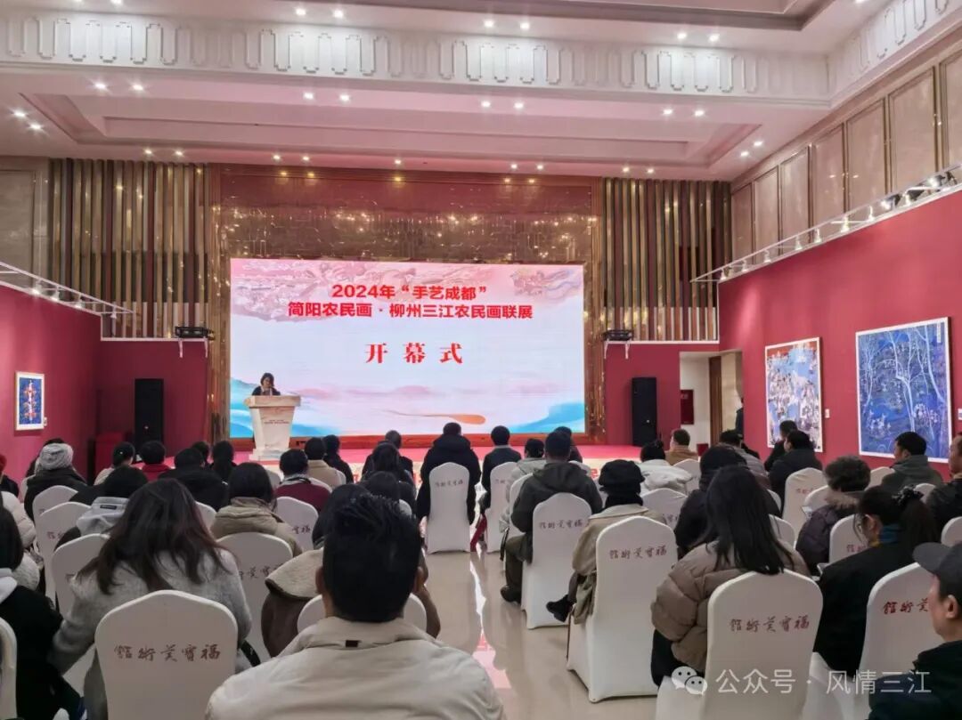 12月9日,由四川省成都市文学艺术界联合会、广西壮族自治区柳州市文学艺术界联合会指导,成都市文艺发展服务中心、成都市民间文艺家协会、柳州市民间文艺家协会、柳州市美术家协会共同主办的2024年“手艺成都”简阳农民画·柳州三江农民画联展在四川省成都市福宝美术馆举行。