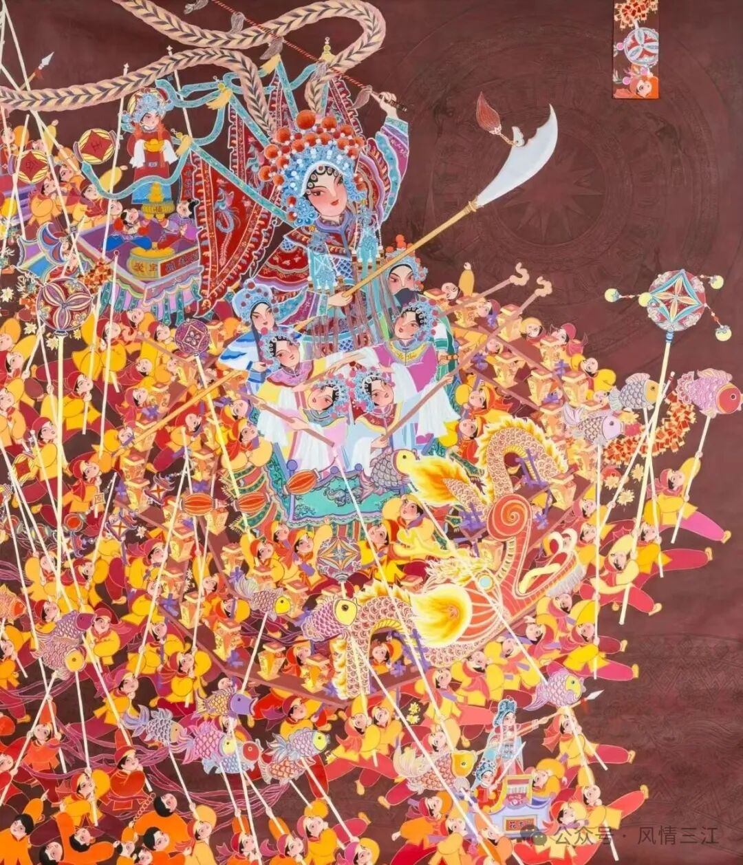 近年来,三江大力实施乡风文明和文化惠民工程,通过组织参加国内各地农民画展、开展公益培训和辅导等形式,激发新时代三江农民画画家创作动力与活力,呈现出覆盖更广泛、构成更多元、队伍更壮大等新气象、新面貌。