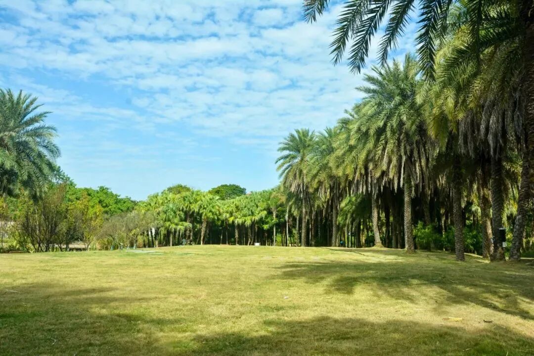 一旁高耸的棕榈树整齐地很有气势