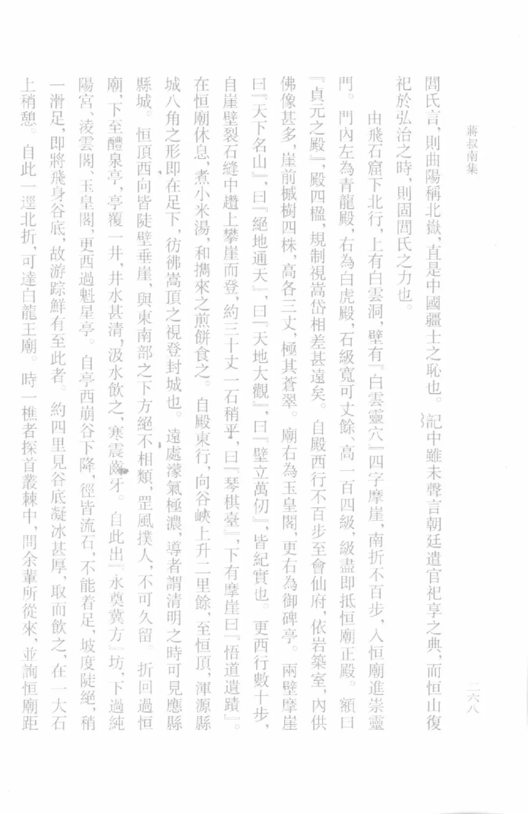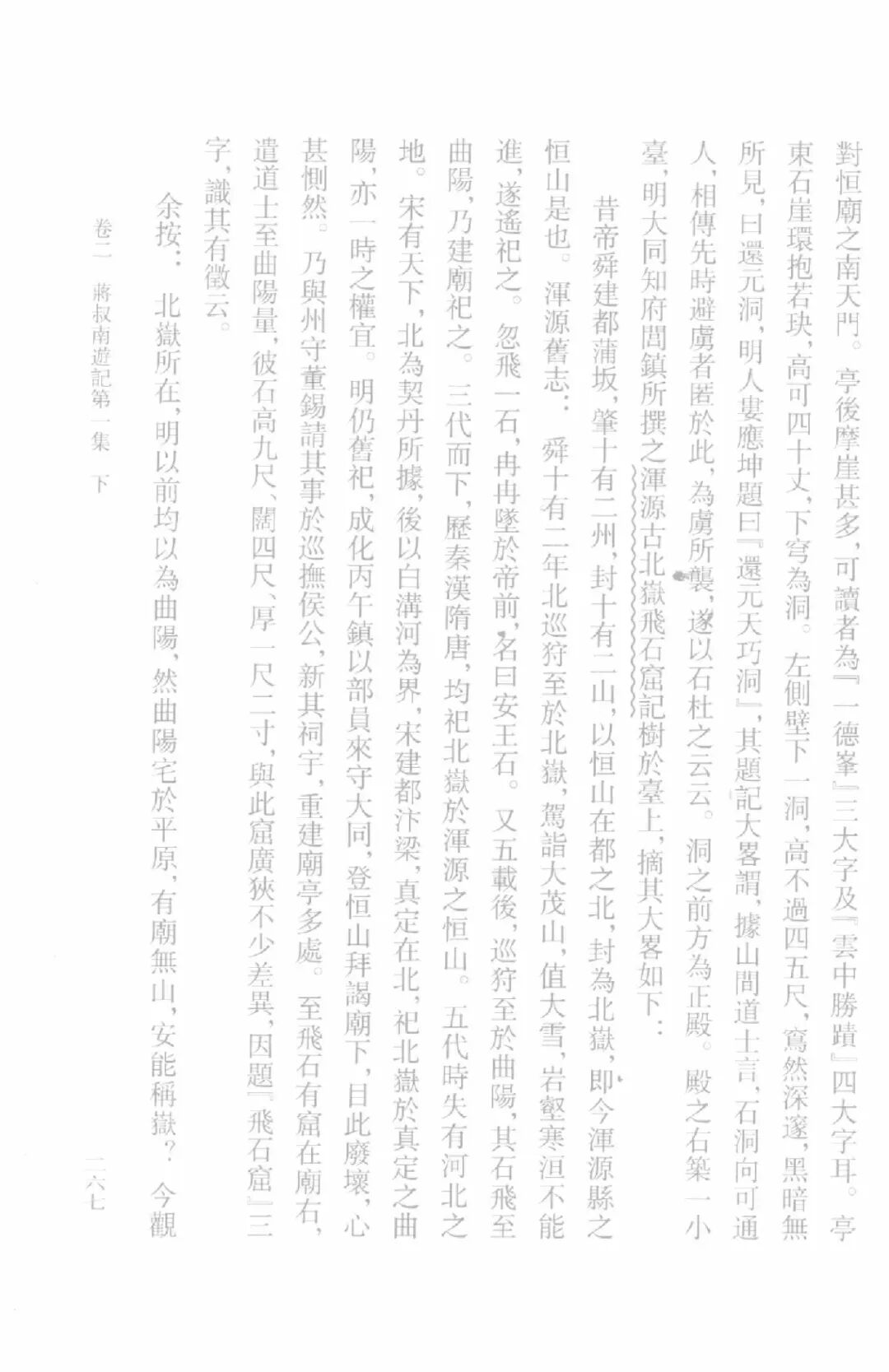 余按:北岳所在,明以前均以为曲阳,然曲阳宅于平原,有庙无山,安能称岳?今观闾氏言,则曲阳称北岳,直是中国疆士之耻也。记中虽未声言朝廷遣官祀亨之典,而恒山复祀于弘治之时,则固闾氏之力也。