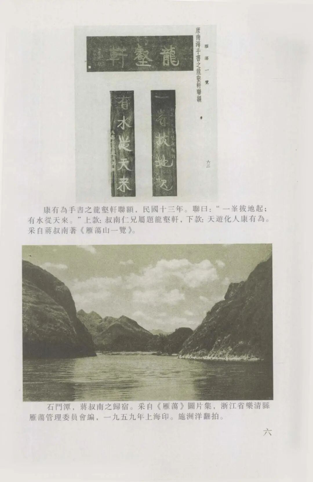 蒋叔南(1885—1934),浙江乐清人,雁荡山主要开发者,梁启超称其为“徐霞客第二”,《旅游杂志》称其为“中国近代第一旅行家”。他身手矫健,酷嗜旅行,每游喜记各山形势,既重增长见闻,更重陶治性情,行文坦荡,不事雕琢,因记述多在凌晨二三时,值脑境清明之际,无一字不实不尽。