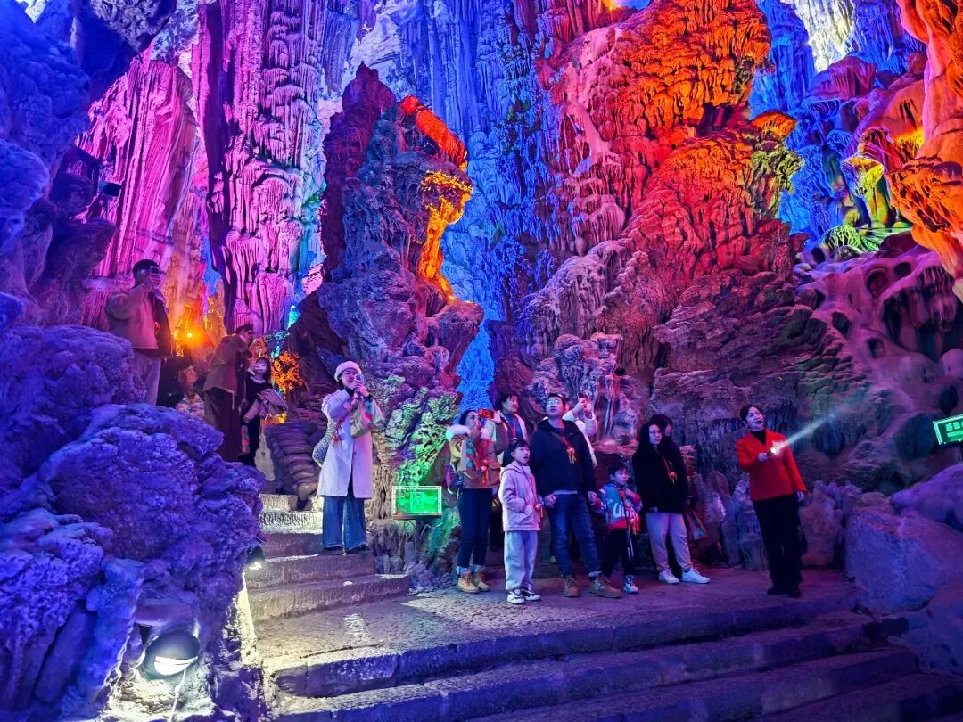 在芦笛景区里,沉浸式感受溶洞的奇幻深邃与田园的静谧悠然。