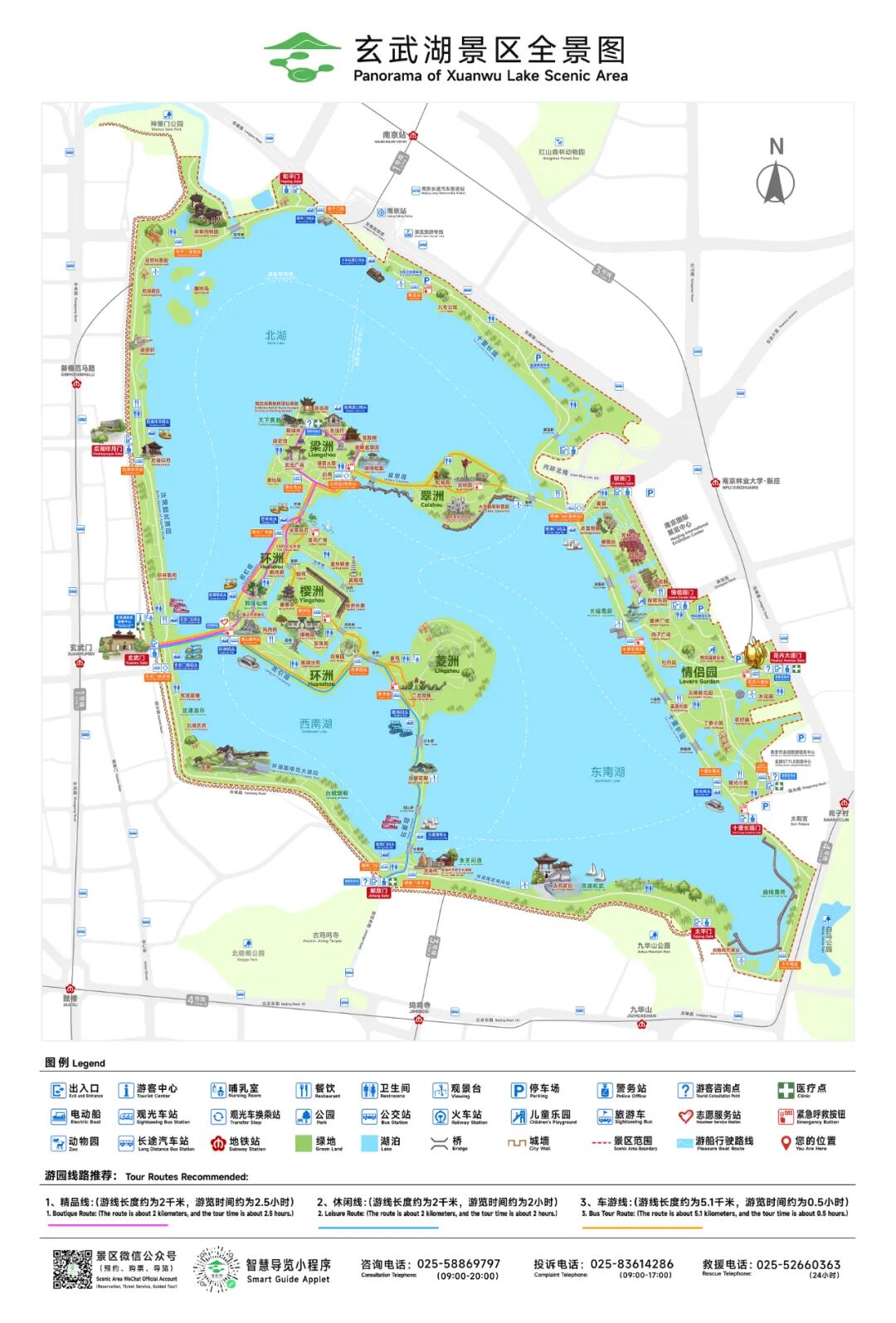 玄武湖是江南三大名湖之一,她东枕钟山北麓,西南临明代城垣,鸡笼山、覆舟山环绕湖南,湖北隔龙蟠路与南京火车站相望,是南京市最大的综合性文化、娱乐、休闲公园,占地5.13平方公里,其中三分之二为水面。湖中分布着各具特色的五块绿洲,五洲之间,桥堤相通,别具其胜,山水城林相融之美彰显。