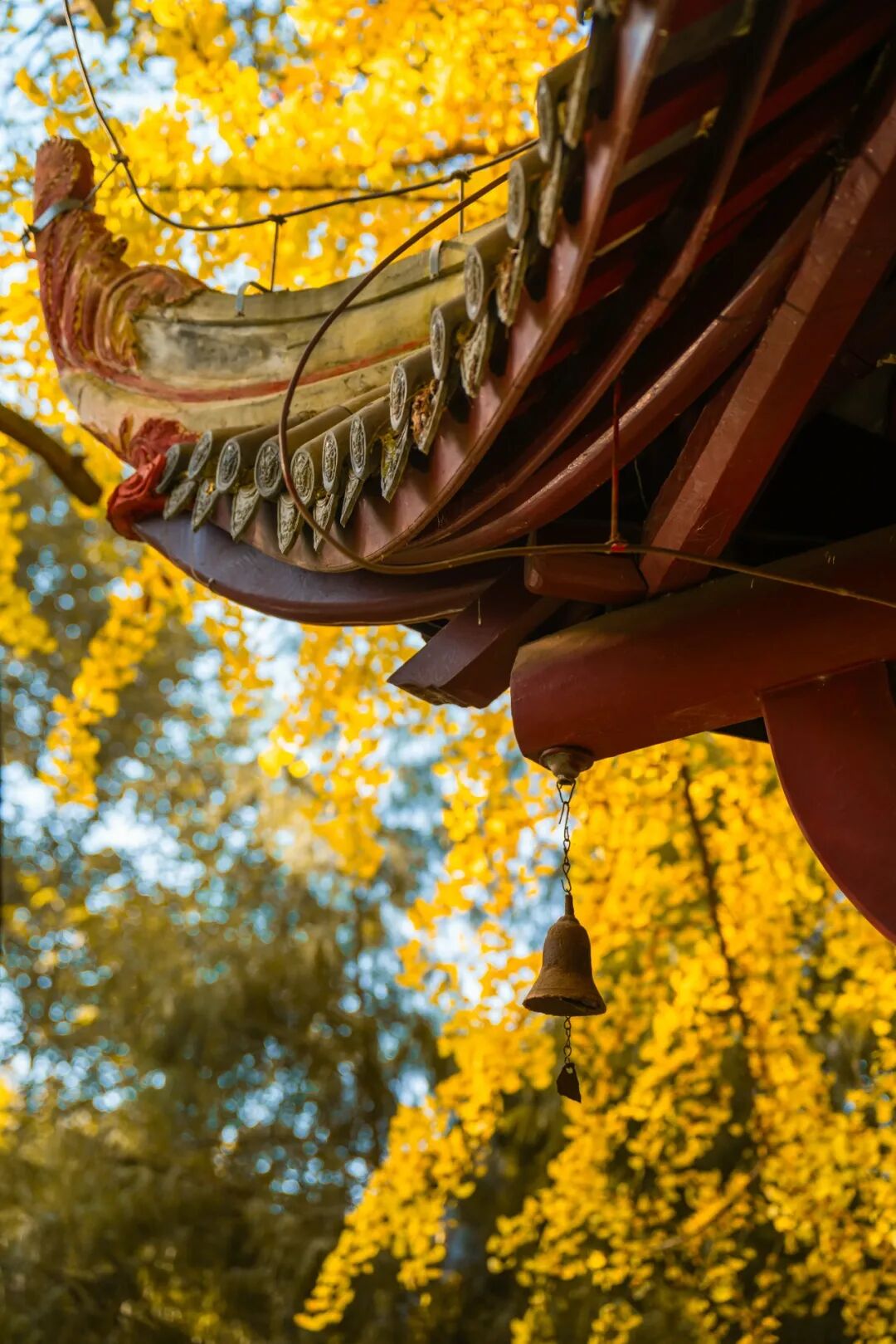 在红墙边,在楼阁间,人们可以尽情拍银杏大片。