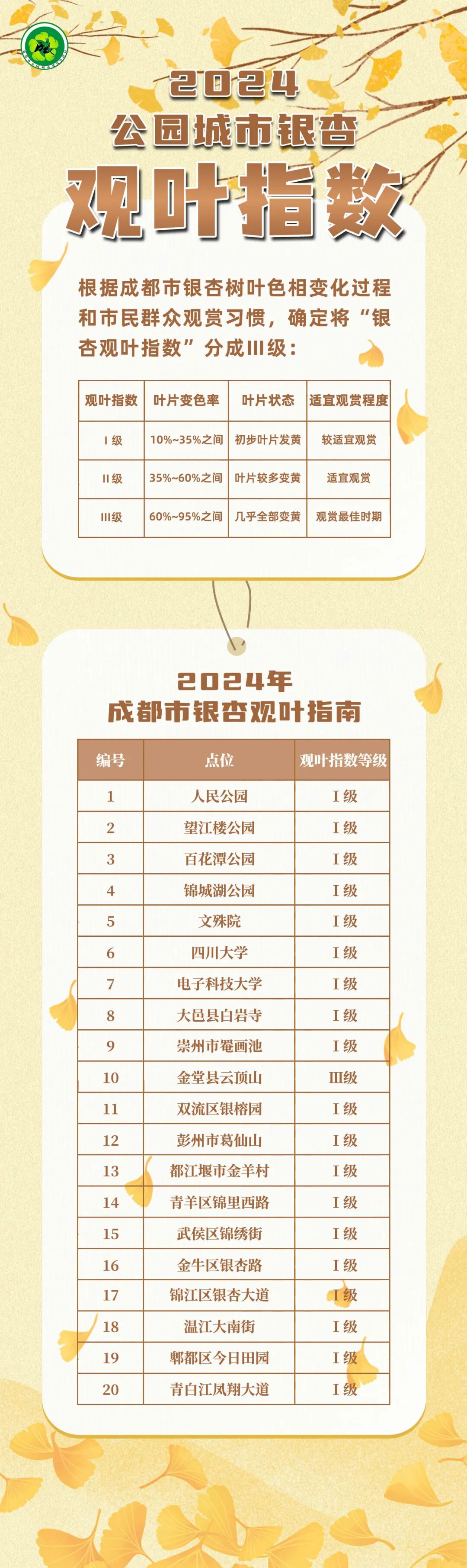 成都公园城市14日发布的银杏观叶指数