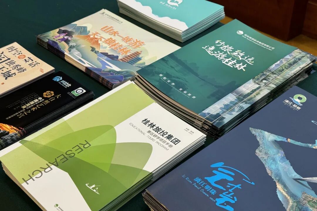 展位现场,桂林旅投集团通过现场讲解、折页展示及宣传片播放等形式,向与会嘉宾介绍了集团旗下的文旅产品及研学资源。作为桂林文化旅游的龙头企业,桂林旅游投资集团始终聚焦旅行体验与研究性学习的有机融合,力求实现旅游与教育相辅相成、协同共进,将桂林独特的自然风光、深厚历史文化底蕴转化为优质研学内容。