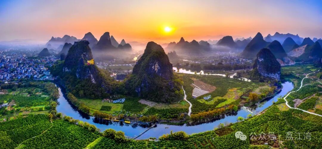 荔江水奔流不息,在荔浦市青山镇形成了一个奇特的半圆形河湾,就是荔江湾。