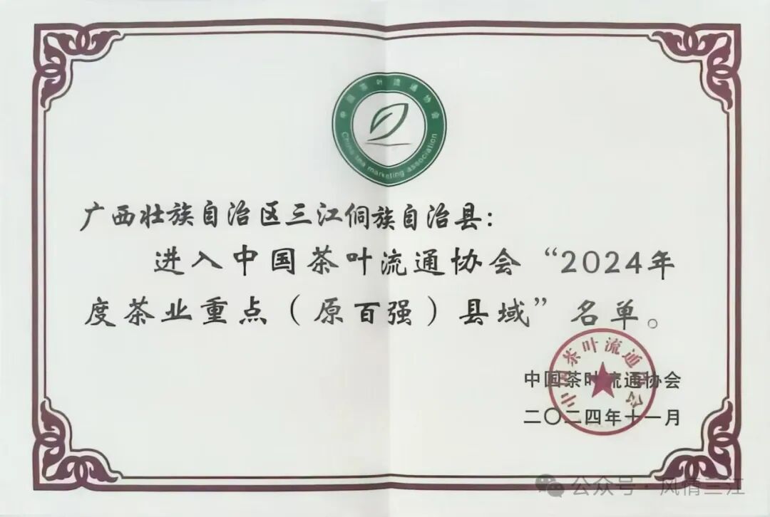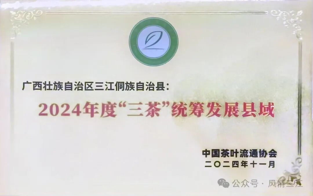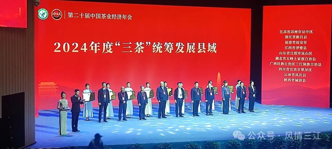 11月29日,第二十届中国茶业经济年会在四川省宜宾市召开,中国茶叶流通协会在开幕式上发布年度行业调查结果,三江侗族自治县喜捧“2024年度茶业重点(原百强)县域”“2024年度‘三茶’统筹发展县域”牌匾。县人大常委会副主任梁德军参加开幕式并接受牌匾。