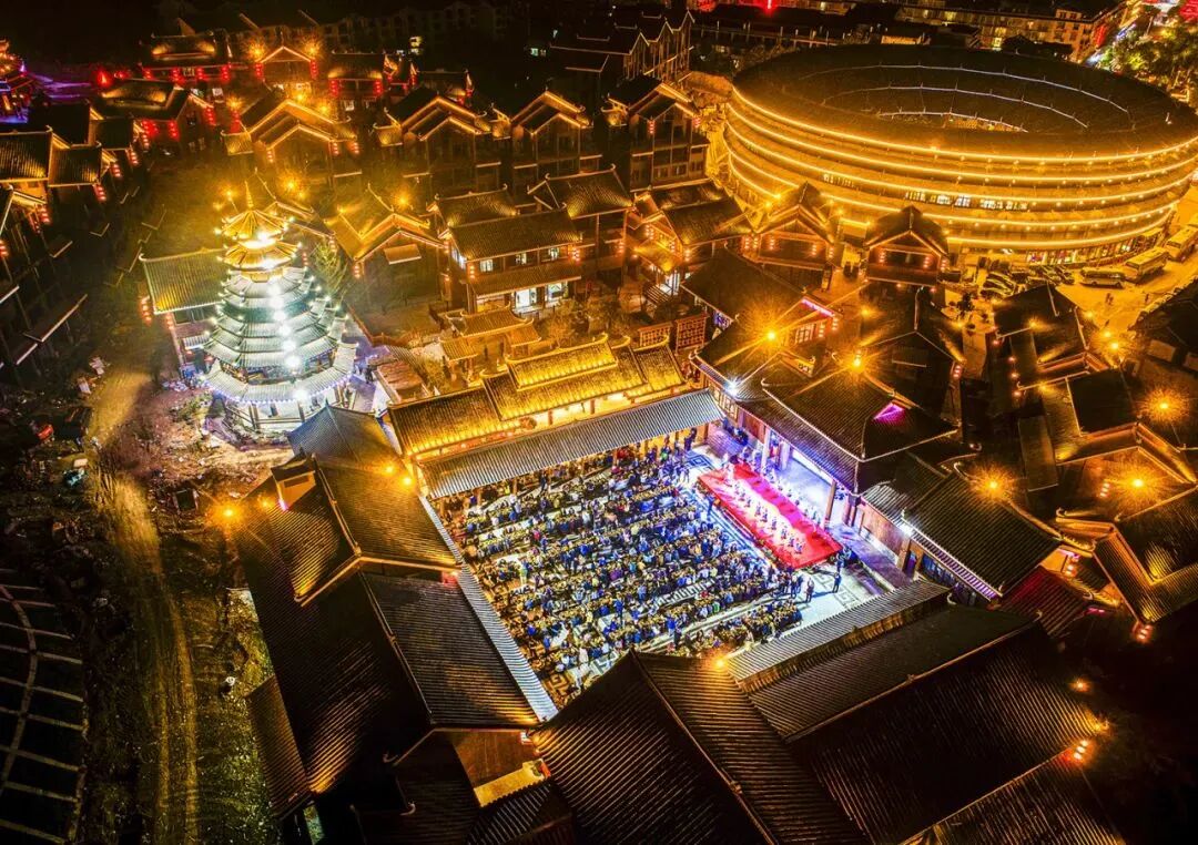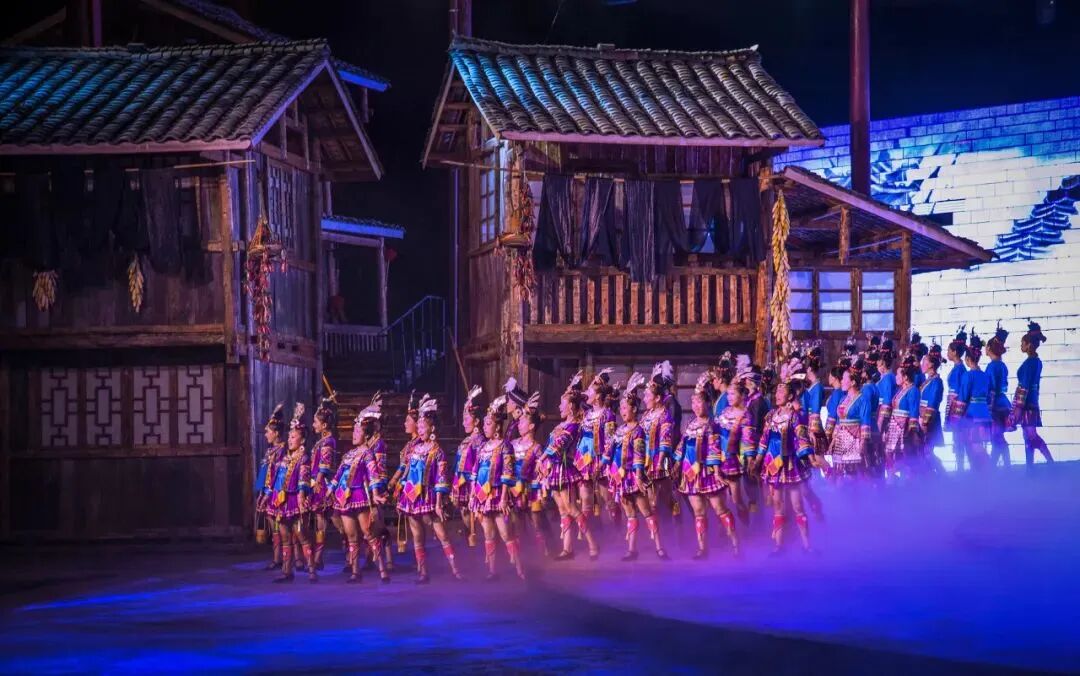到侗乡鸟巢,观看中国首部侗族风情大型实景演出《坐妹》。