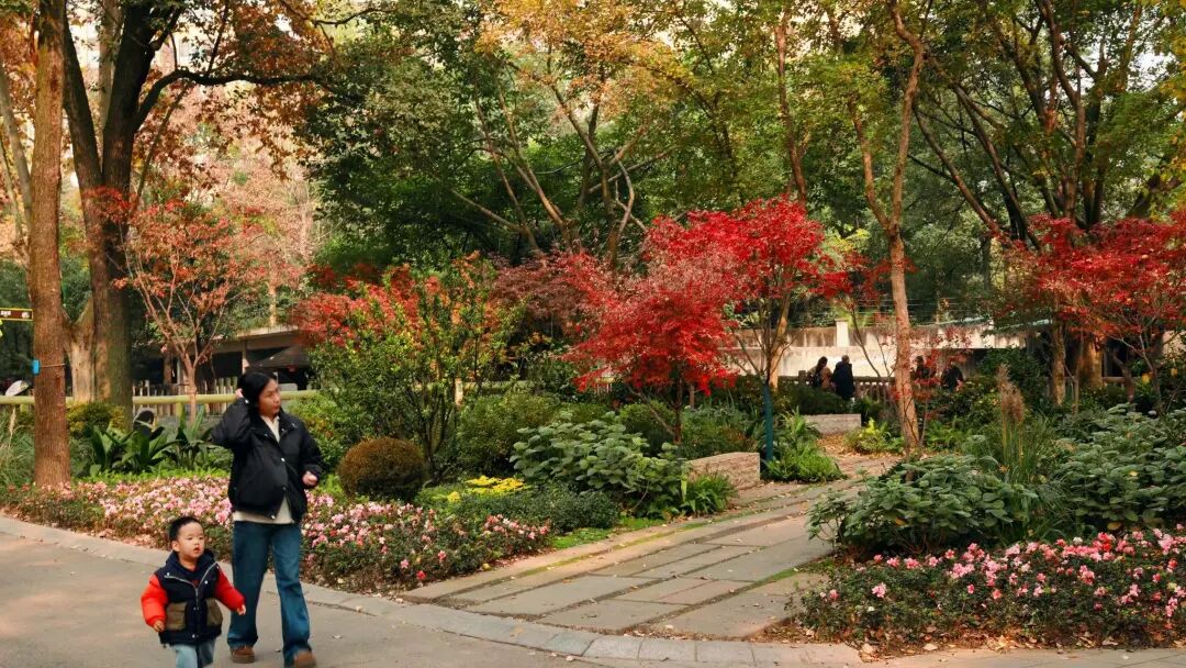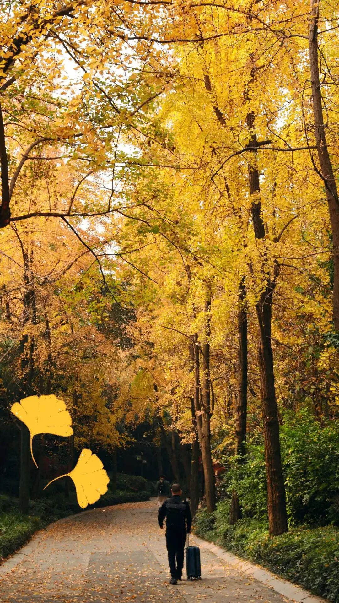 璀璨金黄的银杏,摇曳暖棕的梧桐,燃烧烈焰般的红枫,红黄参差的花草,深深浅浅交织在一起,这氛围感直接拉满,走两步都像在拍秋日写真!
