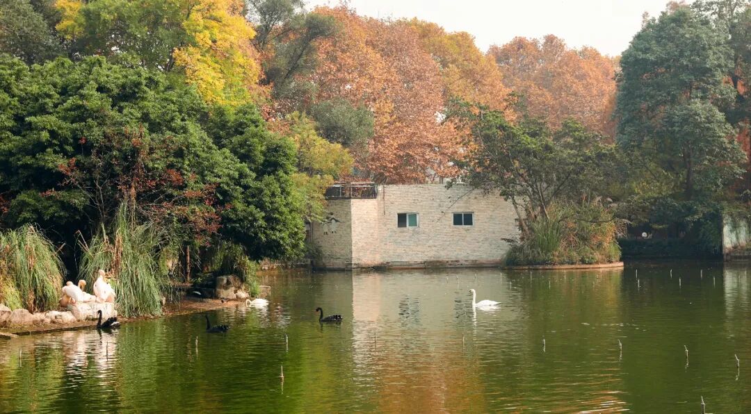 阳光透过枝桠洒下,地面铺满斑驳的碎金,风过时,树叶簌簌地响,混合着远处隐约的动物叫声,更显得园中空旷而宁静。人在其中,恍如步入一座斑斓而安详的森林。