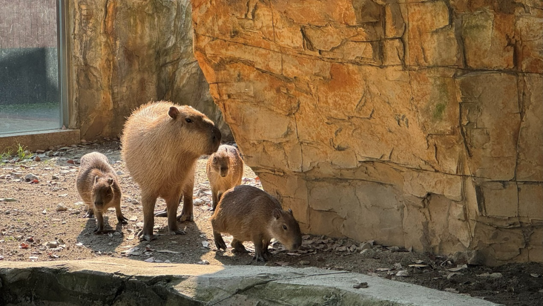 长颈鹿低头与银杏互动时,脖颈弯成优雅的弧线,金黄的叶片与棕褐色毛发形成鲜明对比,偶有斑马踱步而过。水豚一家正享受着暖阳的温暖,你是否愿意驻足尽享这一刻的野趣的秋意。