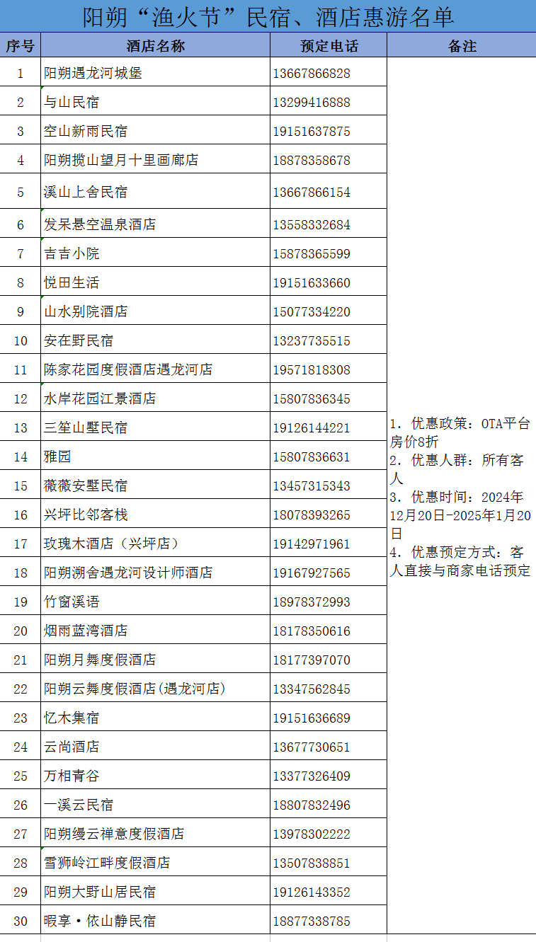 优惠人员:购买遇龙河景区竹筏漂游票的游客