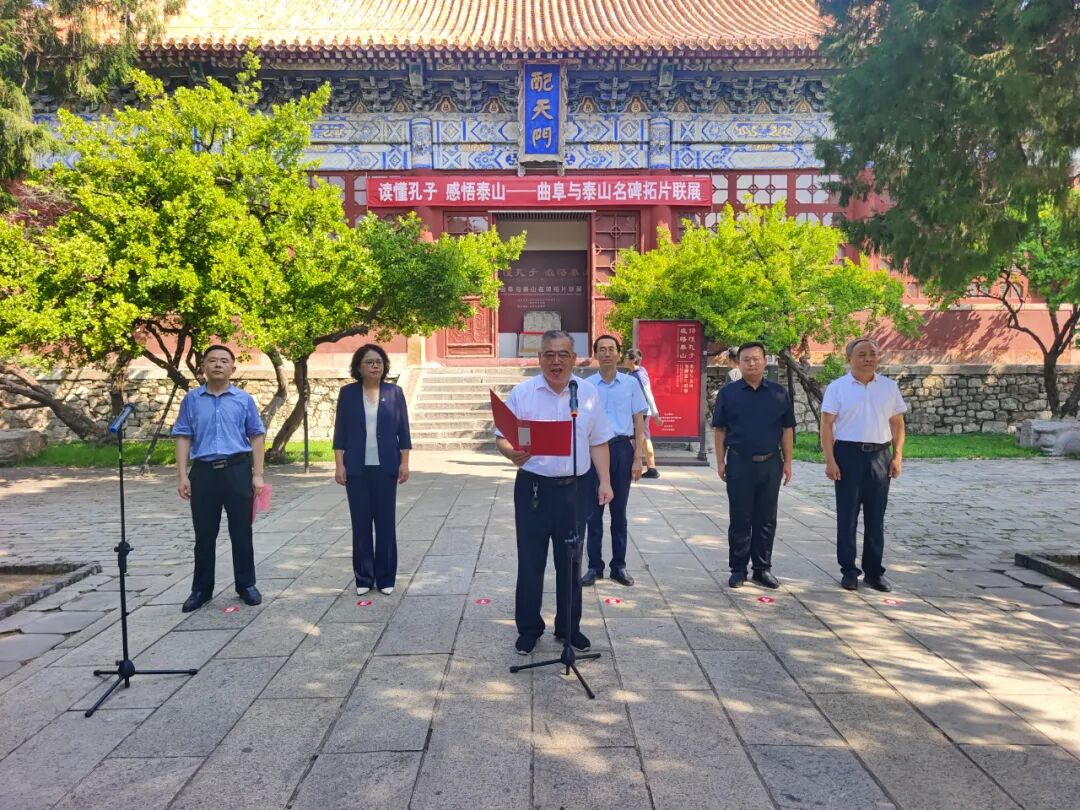 开幕式上,泰山景区党工委委员、管委会副主任李峰首先致辞,他表示泰山作为“五岳之尊”,是中华民族的精神象征,也是儒家文化重要发源地与传播之地,孔子与泰山渊源深厚,其“登泰山而小天下”的名句至今仍激励后人。同时,他提到曲阜三孔景区是儒家文化发祥地,此次泰山景区与曲阜三孔景区联合举办碑拓联展,是共同弘扬中华优秀传统文化的重要举措,既整合了旅游资源,更实现了文化的交融与传承,希望能让更多游客感受儒家文化与泰山文化的独特魅力,领略两地景区的深厚历史内涵。未来泰山景区将持续加强与曲阜的合作,推动传统文化的创造性转化与创新性发展。随后,曲阜市政协党组成员、副主席、市文物局党组书记、局长孔德民致辞,他提到曲阜与泰安地缘相近、文脉相通,孔子与泰山渊源深厚,引用“孔子是人中之泰山,泰山是山中之孔子”凸显二者紧密关联;肯定两地近年来以文化为纽带深化合作,从联票优惠到此次碑拓联展,彰显文旅共赢决心,坚信此次联展将为游客带来沉浸式文化盛宴,为两地文旅产业注入新动能。致辞结束后,嘉宾共同参观展览,在碑拓墨香中感受齐鲁文化的深厚底蕴。