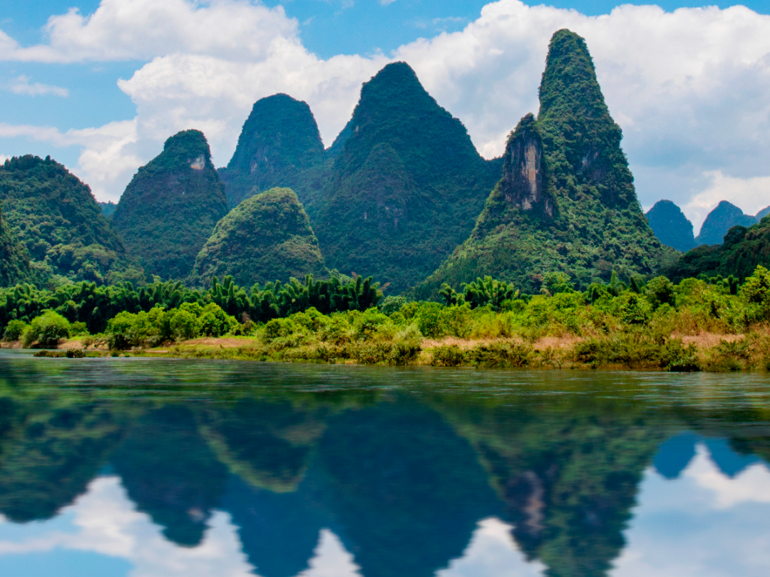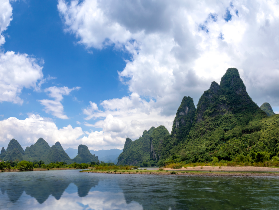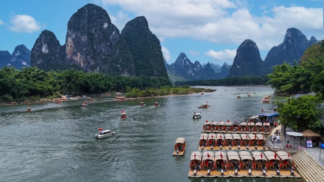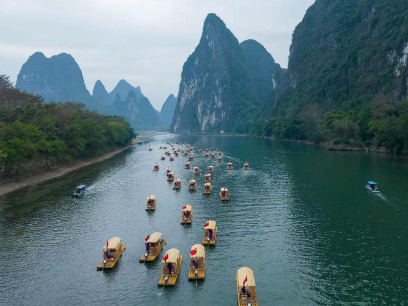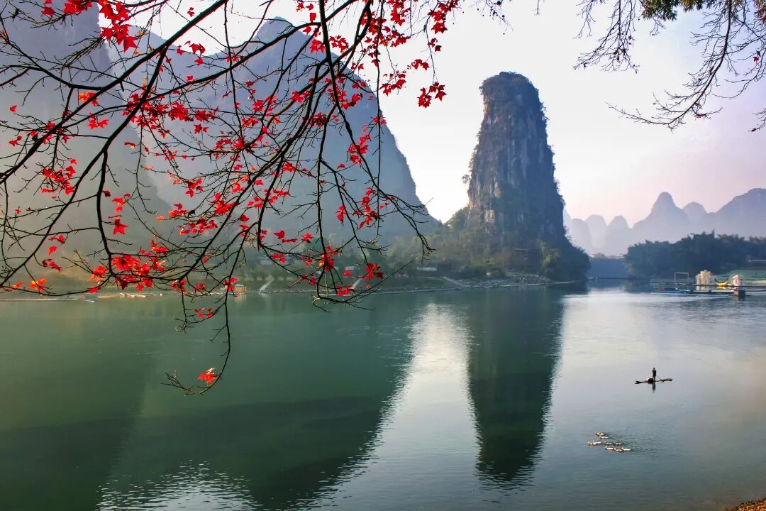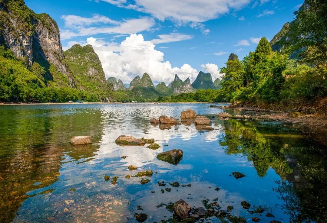 杨堤—兴坪是漓江的精华段,途经鲤鱼挂壁、童子拜观音、神笔峰、浪石仙境、甲天下风光、九马画山、黄布倒影、20元人民币背景等著名景点。
