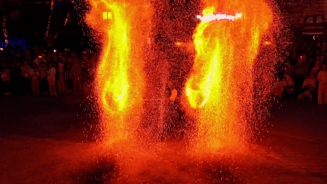 流光铁花大湖秀,一棒铁花冲天起,万千星光从空落,带你体验1600°C的极致浪漫。非遗火壶盛宴,火除邪祟,百家安宁,新的一年事事顺遂、红红火火。