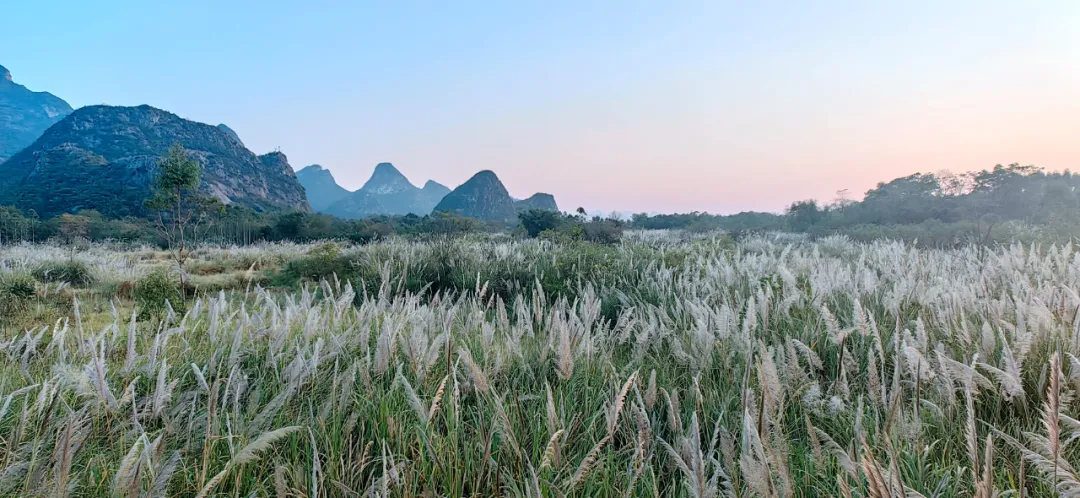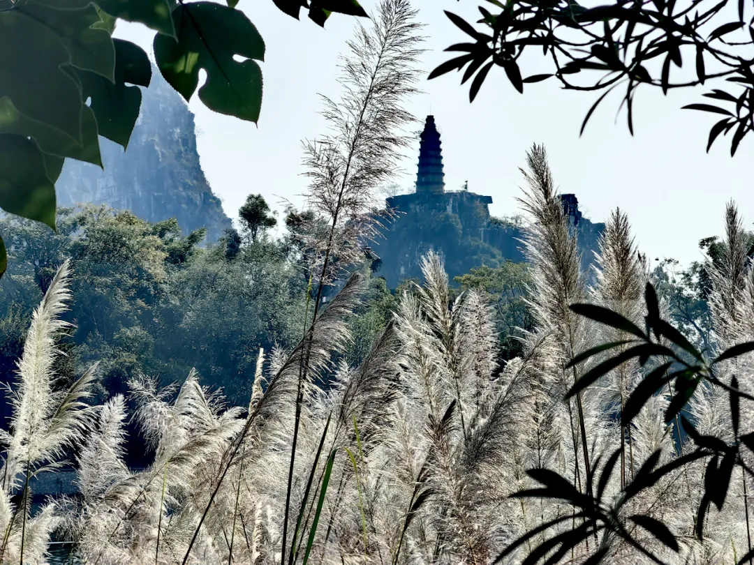 漓江桥芒草:长在河滩面积不大 能拍到塔山