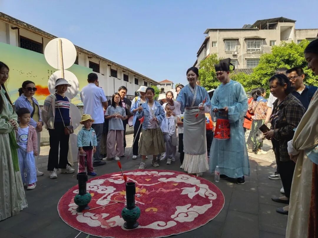 投壶游戏:成人1.2米、老人小孩1米线,5支箭+1分钟,投中越多银票越多