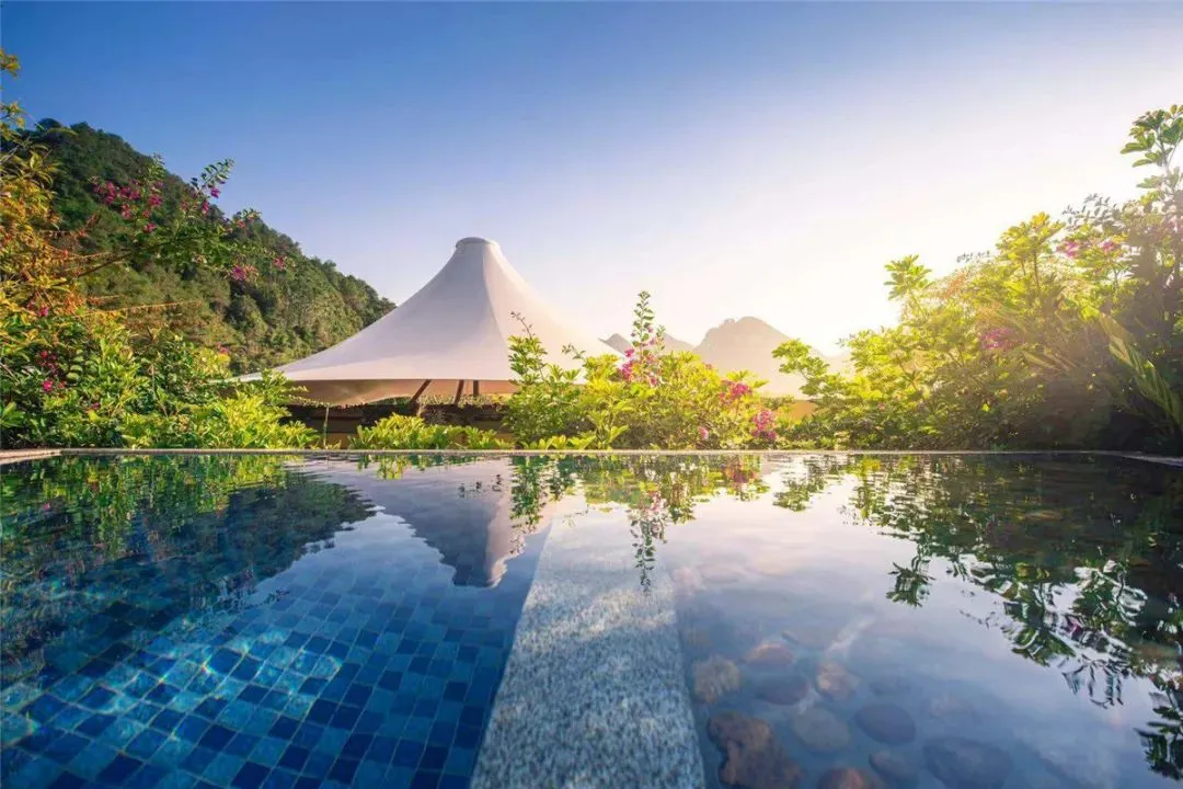 天沐·伴山温泉度假村位于姑婆山脚下,是集温泉旅游、文化观光、休闲度假、养生保健为一体的大型康养综合体。这里的偏硅酸温泉是世界上珍稀的温泉之一,含量高达53mg/L,具有强大的养生保健作用。温泉中心内设有动感水疗区、儿童游乐区、中药养身区等多个区域,游客可以根据个人需求选择最适合自己的泡池。随着温泉水温的变化,体验冷热交替带来的健康效果,身体感受到从头到脚的彻底放松。