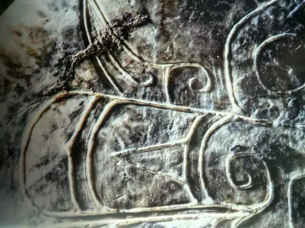 在“神虫”的身体中部,有一个特殊的纹饰引人注目。这种类似纹饰在金沙遗址祭祀区出土的金器、铜器、玉器及大型建筑构件上都出现过,与祭祀文化息息相关。对于这个纹饰的寓意,学术界有着不同的解读。其中最引人注目的一种观点认为:这个纹饰与中原地区的蝉纹相似。